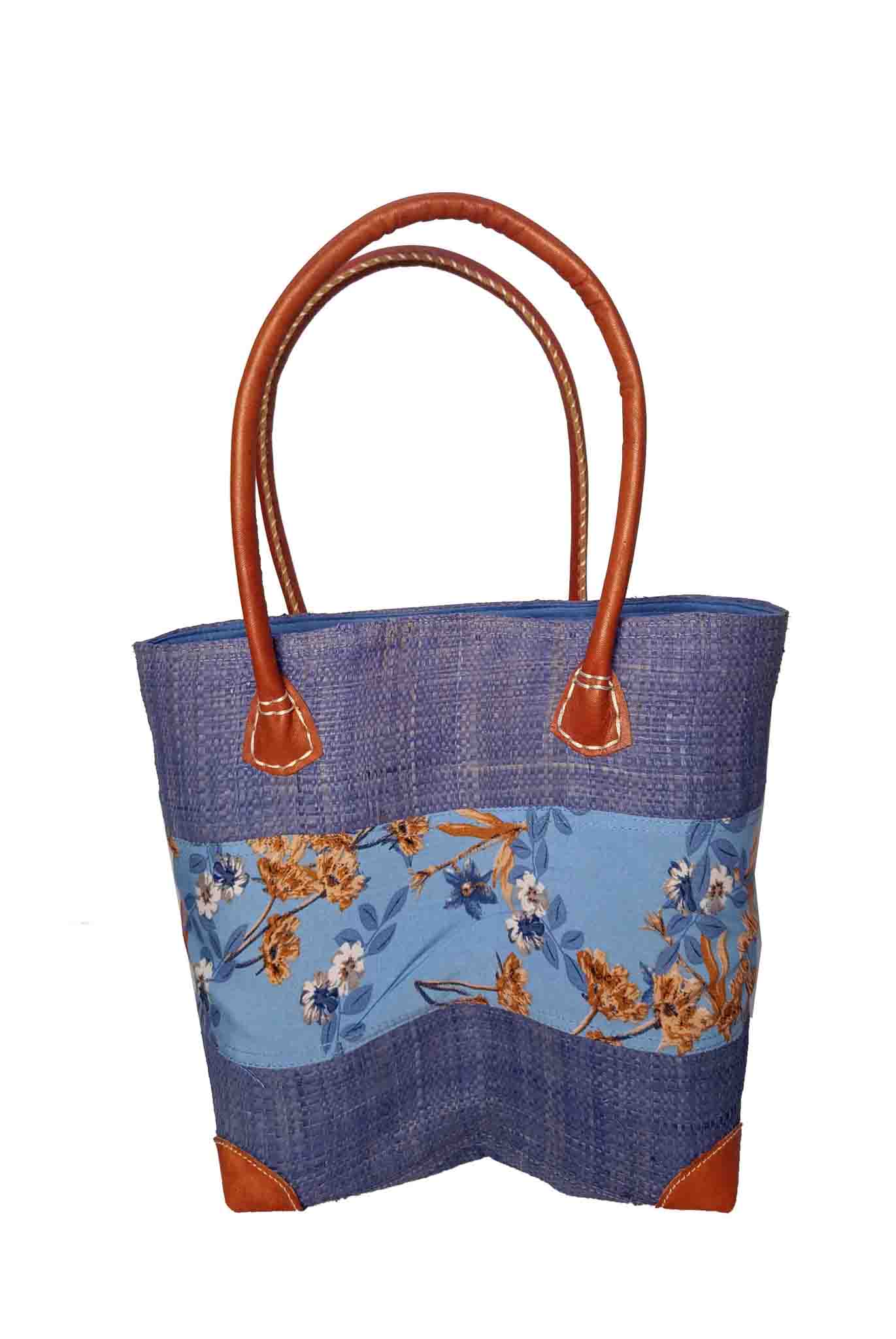 Cabas en raphia naturel et tissu floral –