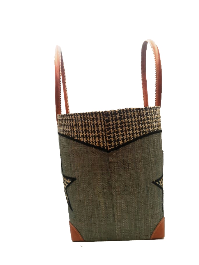 Cabas raphia avec motif appliqué, ce cabas en paille à l’intérieur et habillé en raphia à l’extérieur est idéal pour vos courses, pour le sac de plage, sac pic nic,…, munis d’une poche à l’ intérieur, peut se fermer avec un pochon, les anses et les 4 coins sont en cuir de zébu.