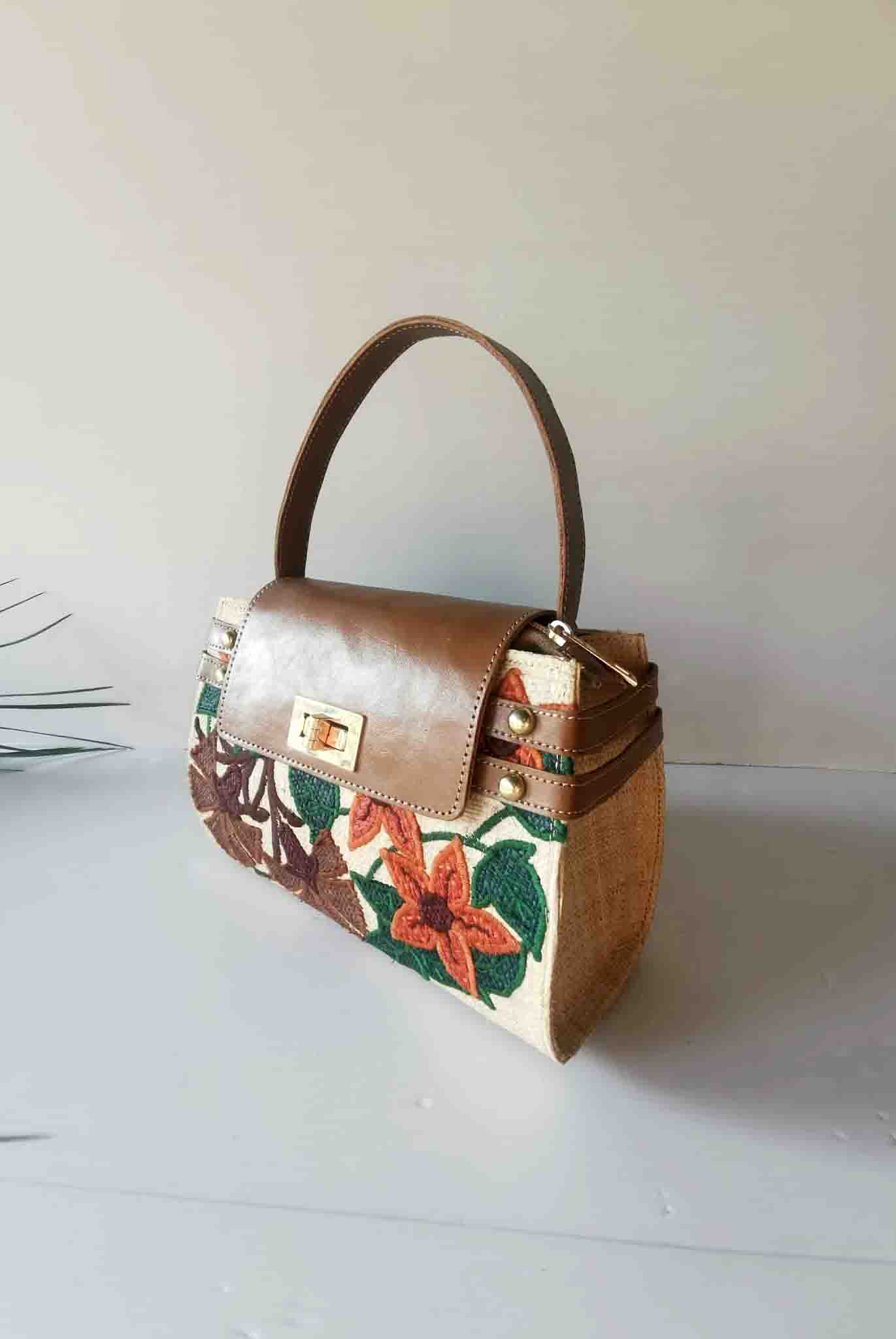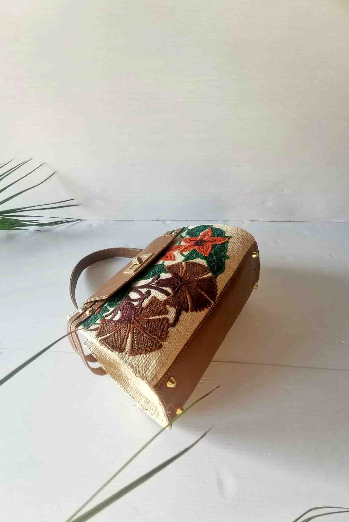 Mini sac bloom en Raphia avec Broderie Florale Artisanale