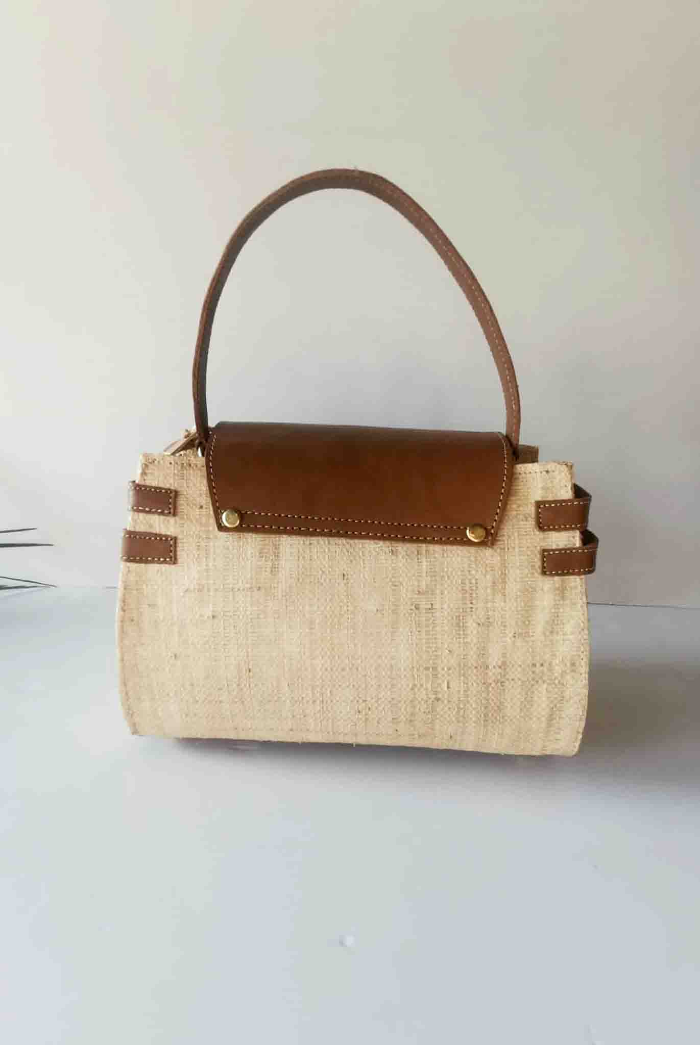 Son rabat structuré et sa poignée en cuir de zébu offrent à la fois solidité et raffinement. Les détails métalliques ajoutent une finition moderne, tandis que la texture naturelle du raphia souligne son authenticité.