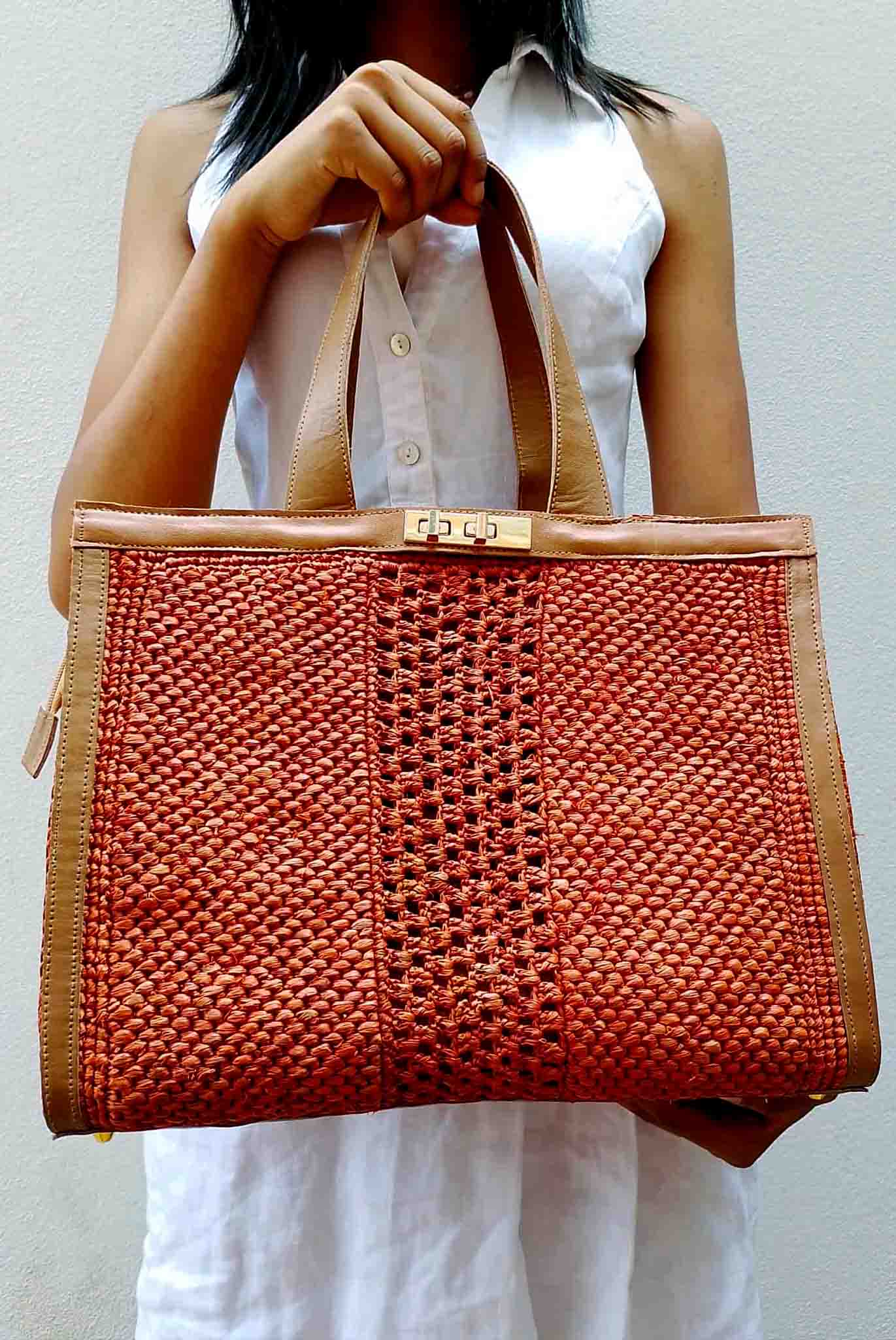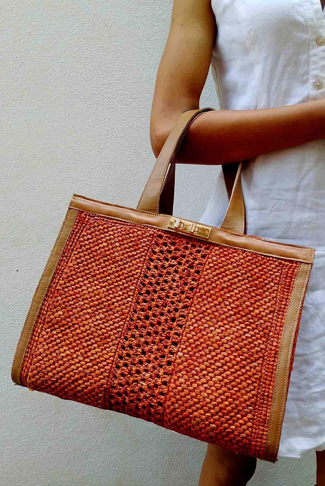 Sac en Raphia Crocheté et Cuir de Zébu – Diva Terracotta