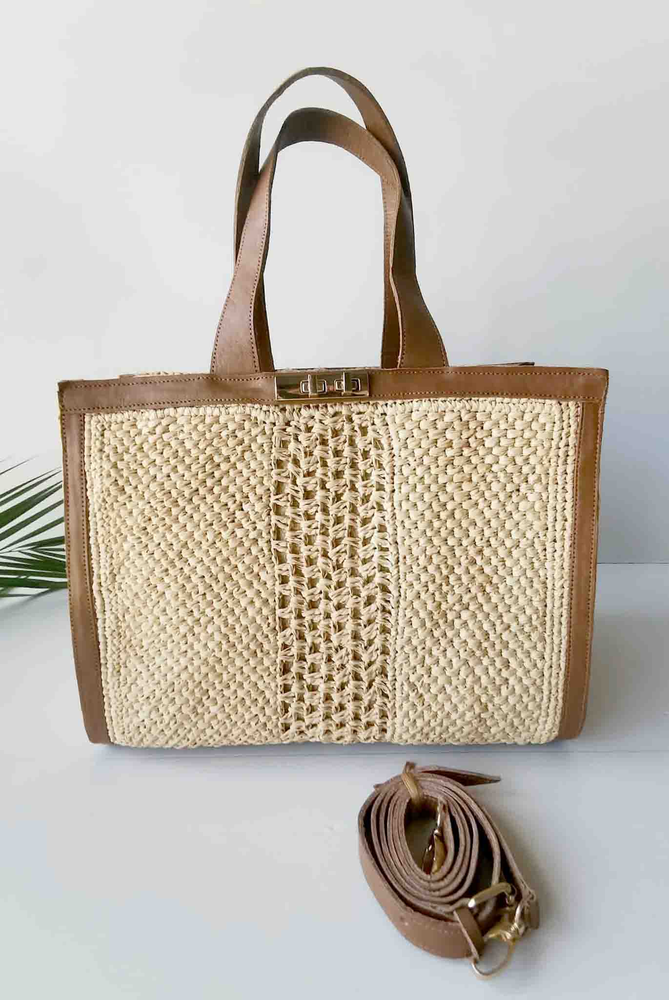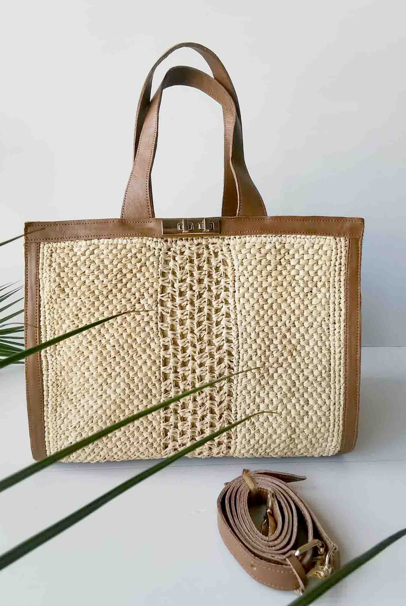 Sac en Raphia Crocheté et Cuir de Zébu – Diva Naturel