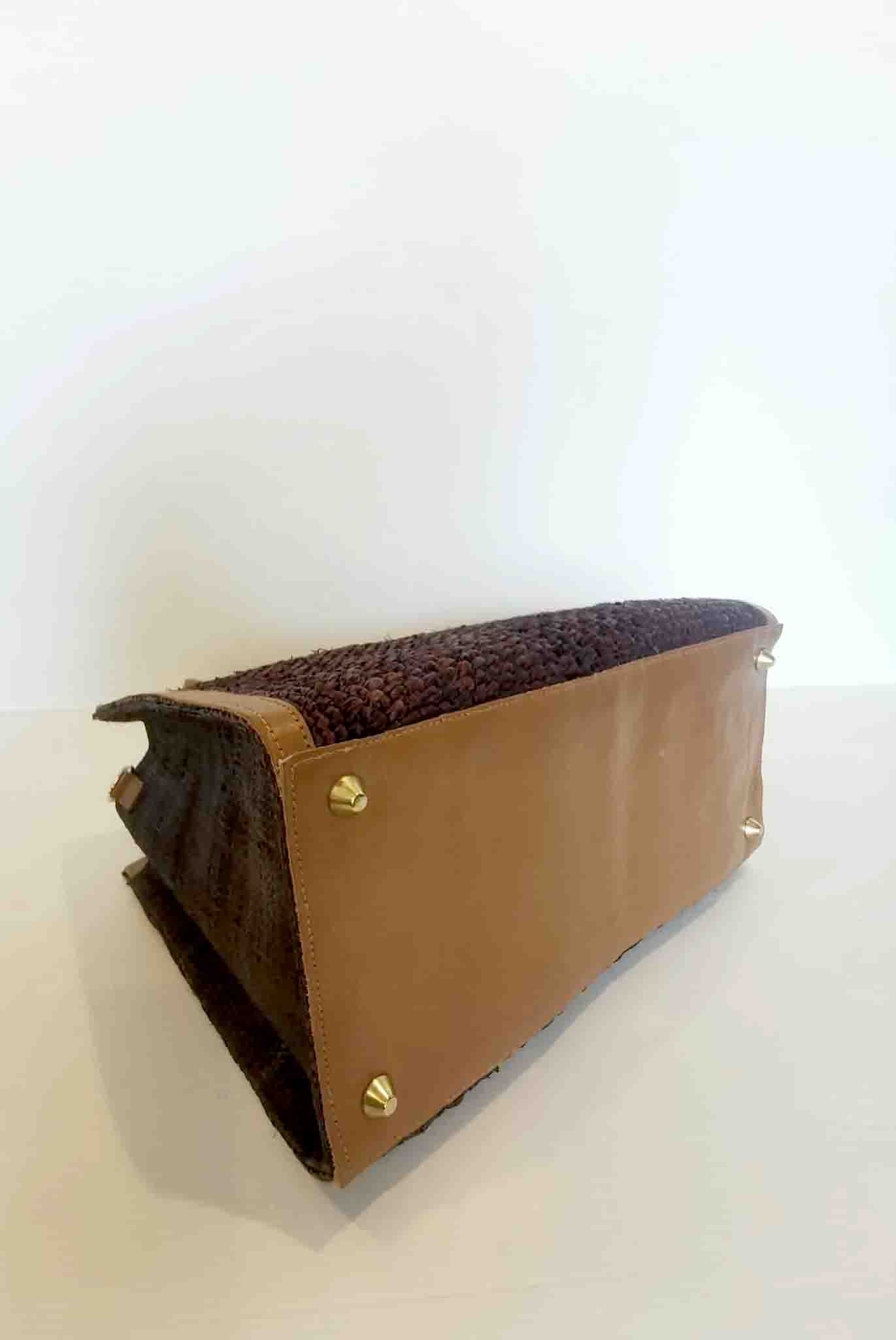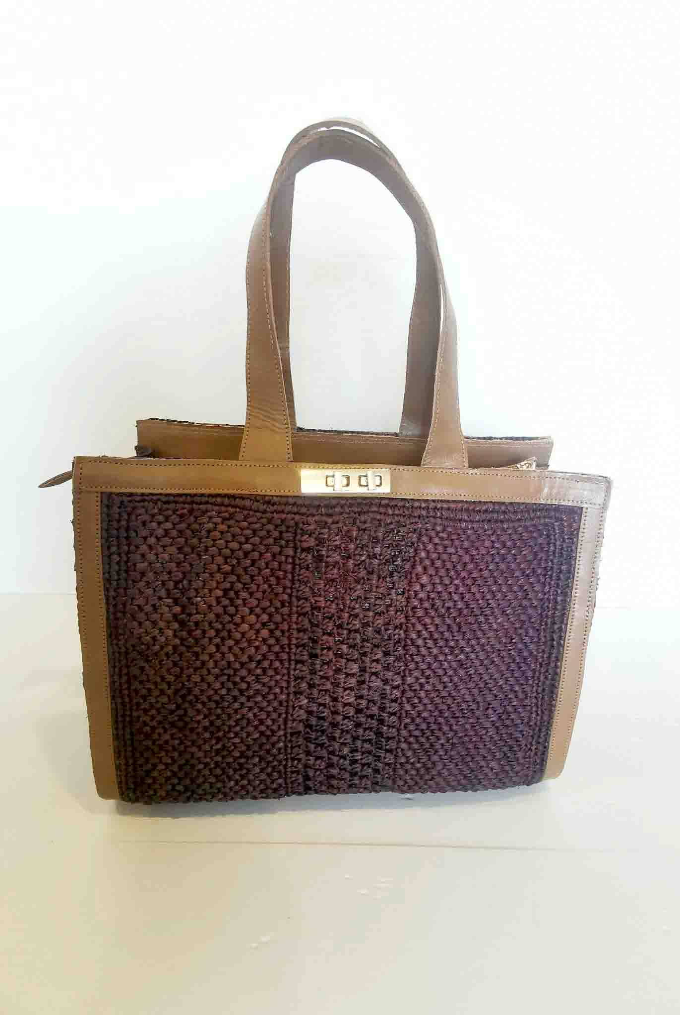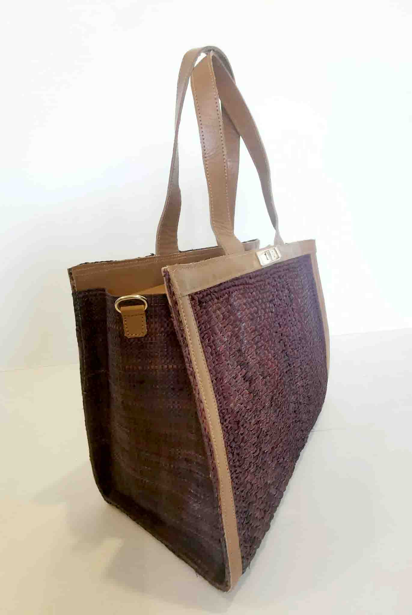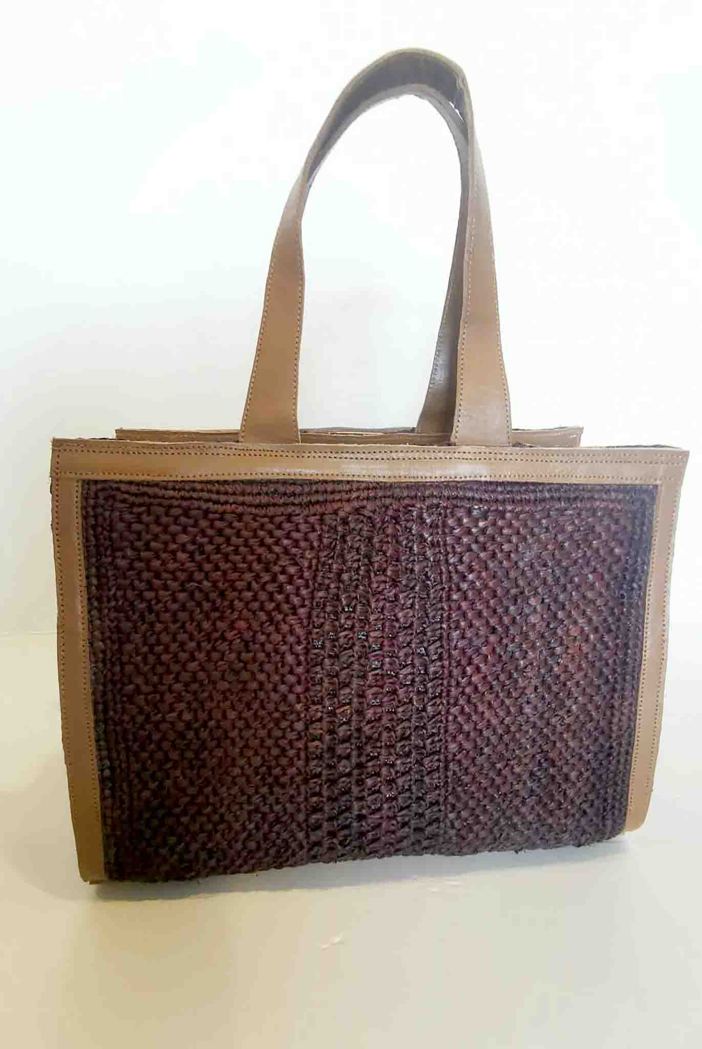 Sac en Raphia Crocheté et Cuir de Zébu – Diva Marron