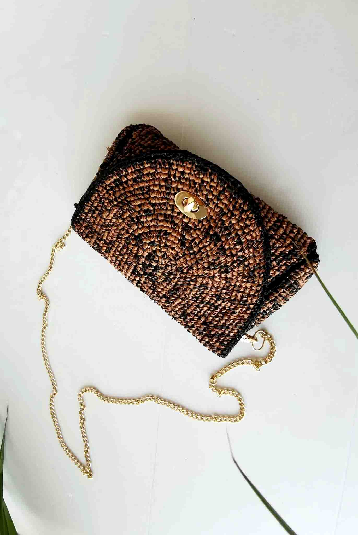 Apportez une touche de caractère à votre tenue avec notre sac bandoulière Élégance, une pièce à la fois chic et intemporelle. Entièrement confectionné à la main, ce modèle séduit par son tressage minutieux en spirale, révélant un savoir-faire artisanal unique.
