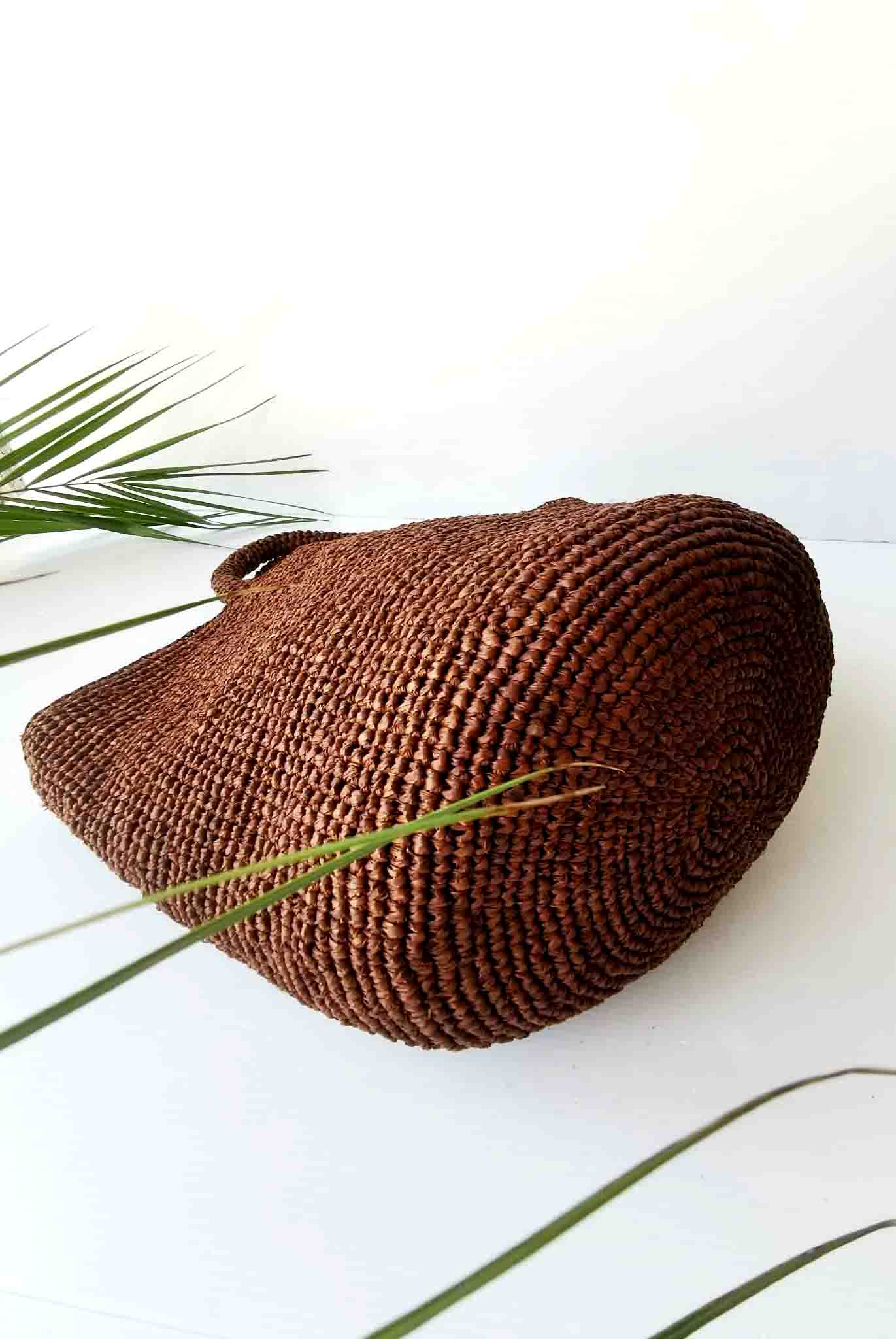 Le sac Madurah séduit par sa couleur marron, élégante et intemporelle. Entièrement crocheté à la main en raphia , il reflète un savoir-faire artisanal authentique et un style à la fois moderne et naturel.