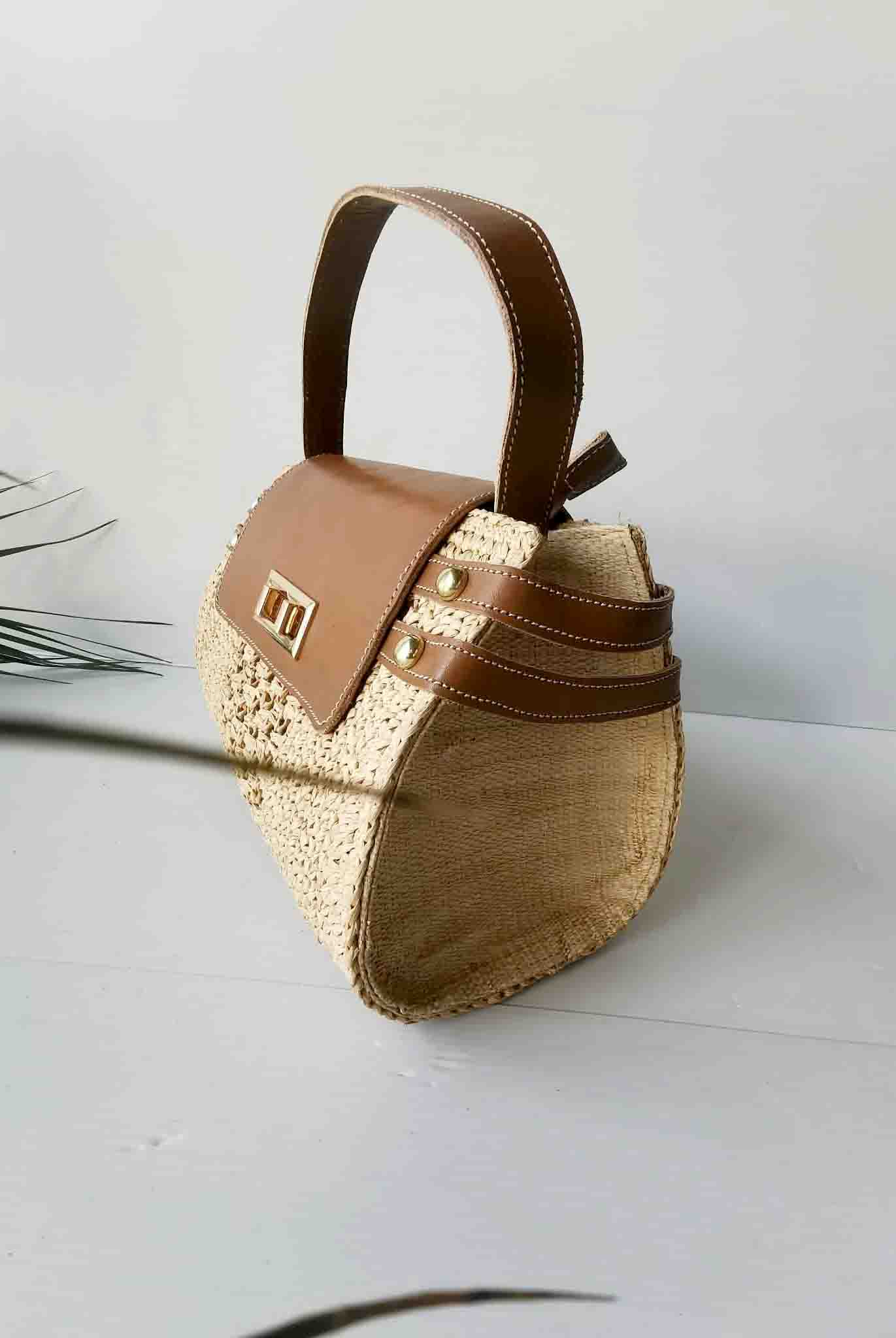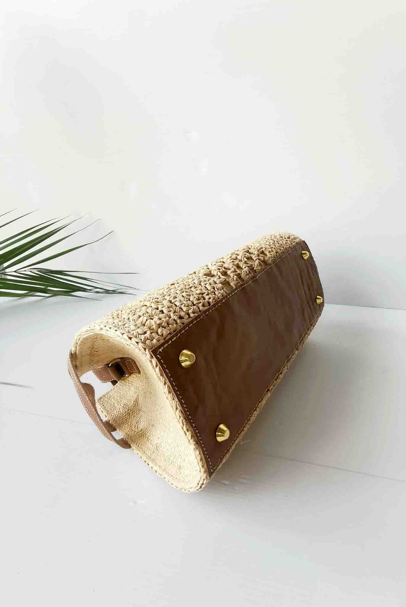 Le sac Promesse Naturel, un sac artisanal confectionné à la main en raphia crocheté avec des finitions en cuir de zébu véritable. Ce sac en raphia pour femme allie élégance, authenticité et savoir-faire artisanal malgache.
