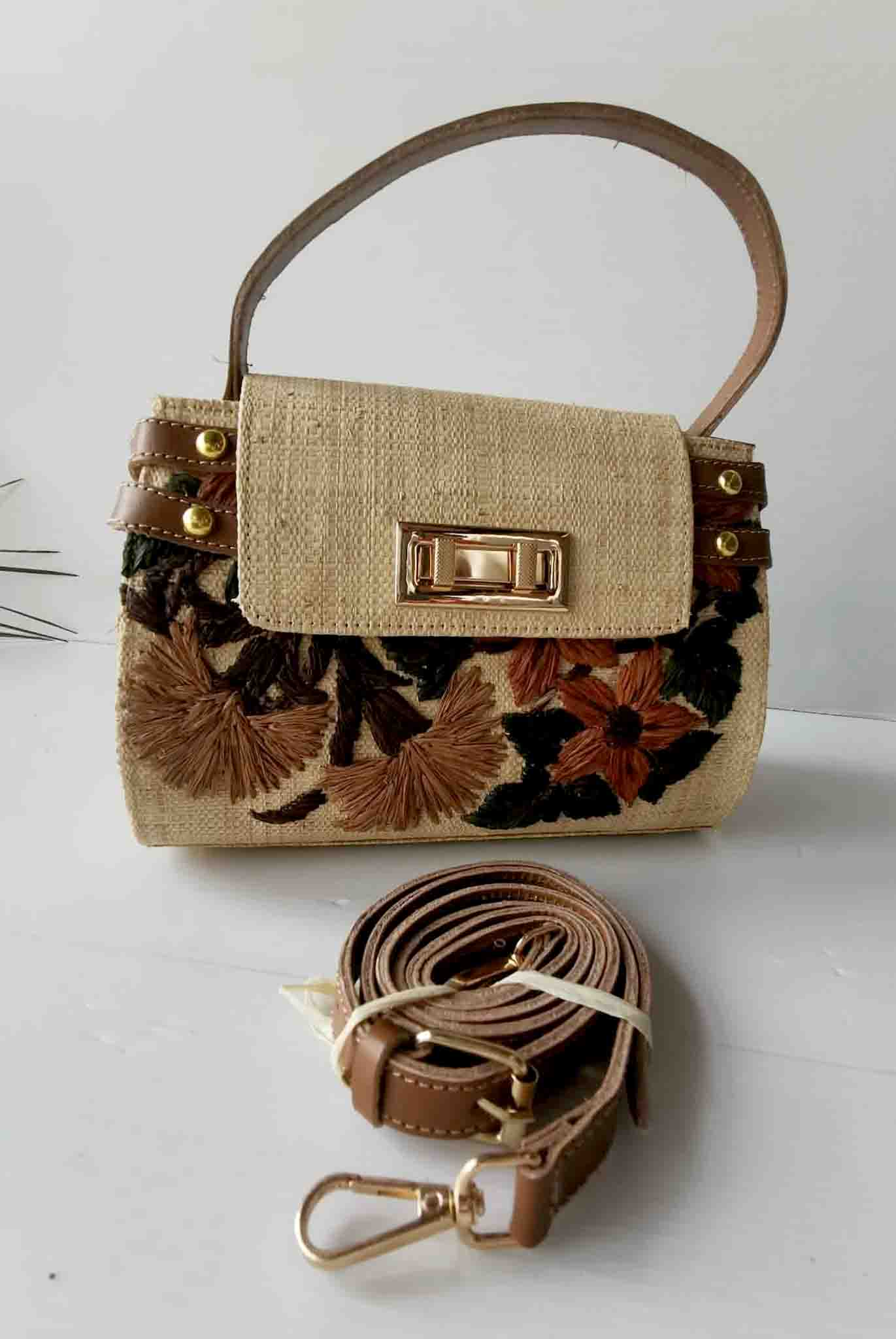 Sac Ravina en Raphia avec Broderie Florale Artisanale